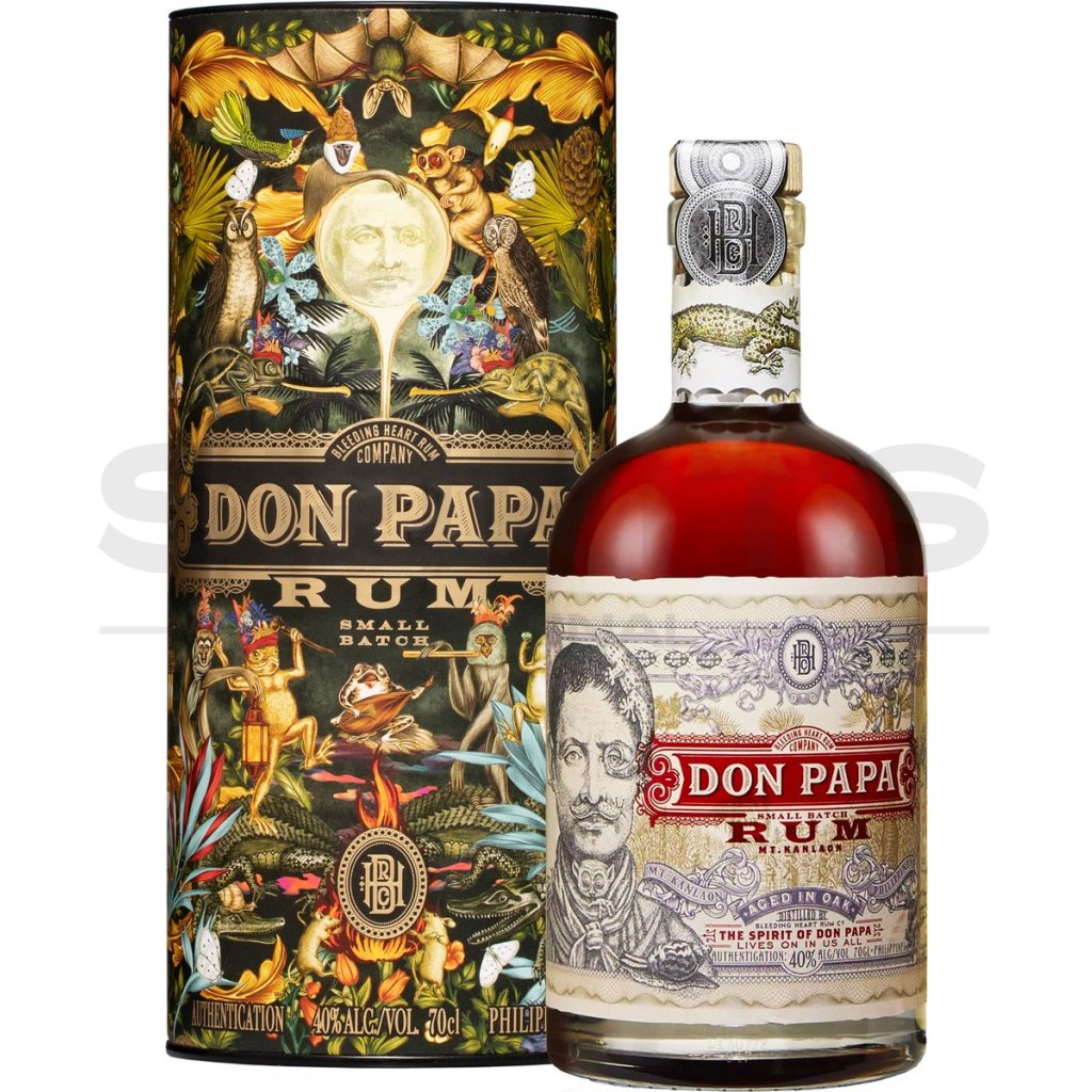 Don Papa je prémiový rum z Filipín, který si získal srdce milovníků kvalitních destilátů po celém světě. Tento výjimečný rum, inspirovaný legendárním revolucionářem Papa Isio, pochází z ostrova Negros, kde se pěstuje jedna z nejkvalitnějších cukrových třtin. Díky unikátnímu tropickému zrání a pečlivé destilaci má Don Papa bohatou, hladkou chuť s jemnými tóny vanilky, medu a kandovaného ovoce.