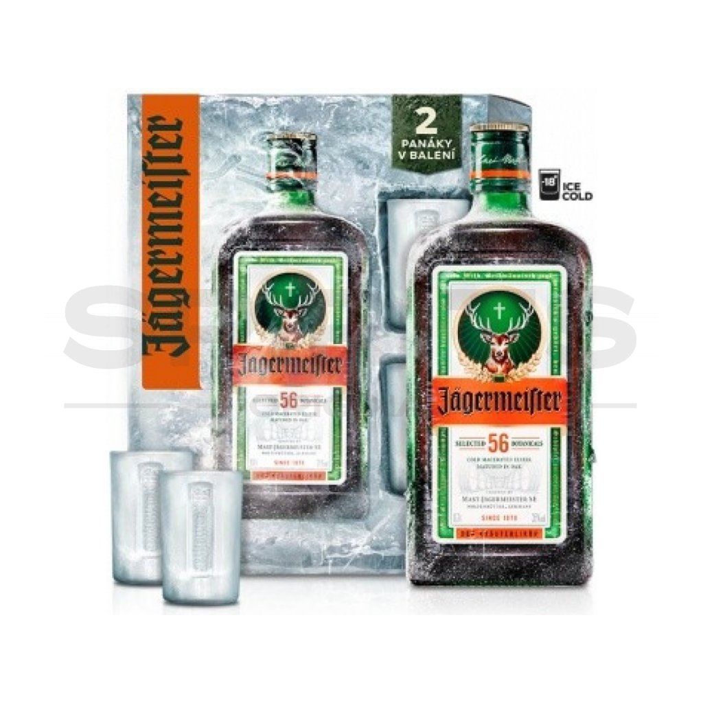 Jägermeister je jedinečný hořký bylinný likér vyráběný od roku 1934 v Německu. Vyrábí se pouze z přírodních přísad, základ tvoří 56 druhů bylin, kořenů a plodů z celého světa. Po smíšení s čistým alkoholem zraje nejméně jeden rok v dubovém sudu. Jägermeister chutná nejlépe ledově namražený na –18 °C. V dárkovém balení Jägermeister 35% 0,7l + 2 x sklo.